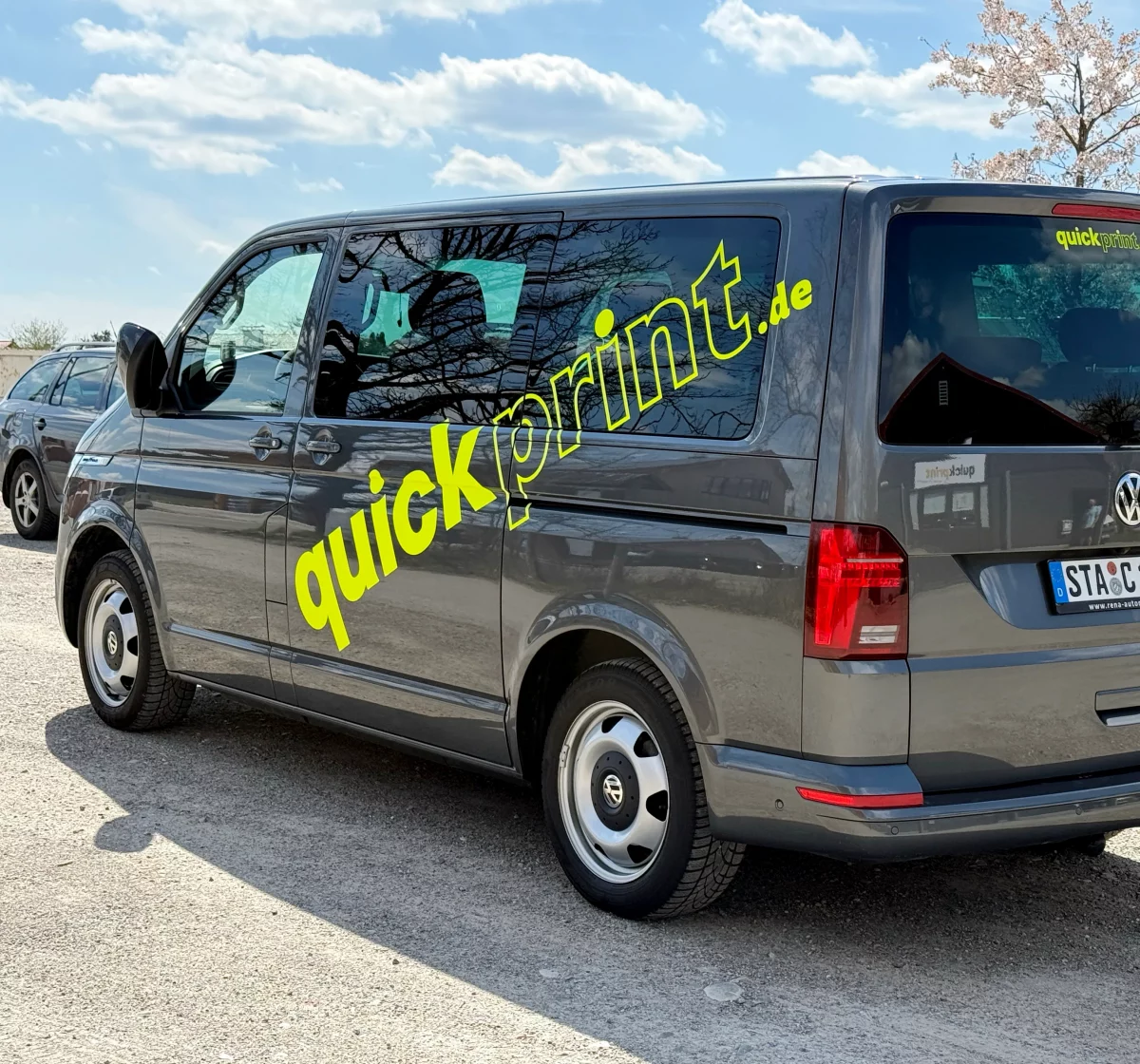 Die Dauer hängt vom Umfang der Beschriftung ab. Eine einfache Teilbeschriftung (z.B. nur Türen) kann bereits in wenigen Stunden fertig sein. Eine Vollbeschriftung eines Transporters dauert in der Regel 1-2 Tage. Wir informieren Sie vorab über den genauen Zeitrahmen.